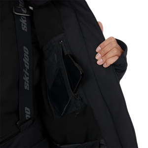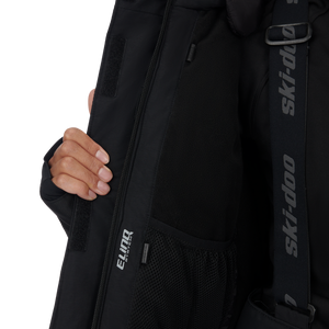 Show off your racing spirit in the Women’s Exodus X-Team Edition Jacket. This Ski-Doo jacket is designed with a windproof, water-resistant shell and lightweight, breathable insulation, making it the perfect snowmobile coat for active trail riding, jumps and even backcountry expeditions. When it comes to preserving your body temperature, the Radiant Core technology, polar fleece lining, and adjustable cuffs with wrist gaiters work together to deliver maximum warmth. And don’t worry about riding in low light—the 360° reflective details make sure you’re seen from every angle. With underarm ventilation, 100% sealed seams and logos, and YKK zippers featuring self-locking puller technology, the Exodus X-Team Edition Jacket is all you need to get after it.