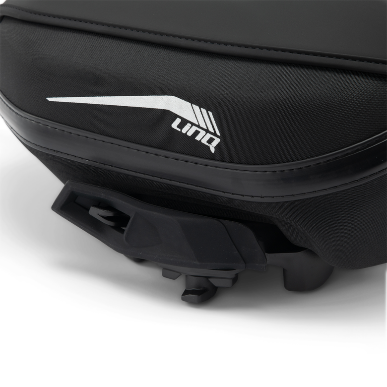 All the benefits of LinQ - simple, fast and secure. Semi-rigid expandable bag. 5.5 Gal (21L) capacity. Utilizes LinQ mounting system (Patent US 8777531 and US 8875830). Easy one-second on/off tool-less system. Requires LinQ Base Installation Kit. Maverick Trail, Maverick Sport, Maverick Sport MAX: LinQ Base Installation Kit required for rear cargo installation or Passenger Seat Base LinQ Kit required for passenger seat installation. Defender: LinQ Cargo Rack or Adventure Roof Rack required. Maverick X3 MAX: Adventure Roof Rack required. Outlander, Renegade, Maverick, Maverick MAX, Maverick X3: LinQ Anchor Adaptor Kit required. REV Gen5, Neo, REV Gen4, G2, G2L, G2S, Commander, Commander MAX, Maverick Trail, Maverick Sport, Maverick Sport MAX, Defender, Defender MAX, Maverick X3, Maverick X3 MAX