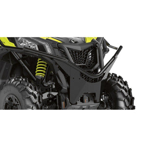 1.5" (3.8 cm) diameter steel tubing with durable powder coat finish and reinforced with a 0.09 in (2.3 mm) thick steel plate. Delivers additional protection for your vehicle. Sleek lines designed to match your vehicle's body and greatly enhance overall look. Combines perfectly with the DragonFire Front Exo-Frame. Billet End Caps with DragonFire Logo. Not compatible with the Front Hitch Receiver. Includes brackets for auxiliary light mounting. Maverick Trail, Maverick Sport, Maverick Sport MAX