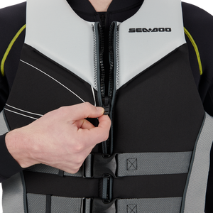 Say hello to your independence from uncomfortable, cumbersome PFDs with the Sea-Doo Freedom PFD Life Jacket. Eco-conscious ecoprene material is made without rubber and designed to dry quickly without extra weight from the PVC and expandable Polyethylene insulation. Give your back an extra boost thanks to the extra foam padding in the lumbar comfort zone, which minimizes lower back pressure and adds support while you're sitting. Other key features include a quick-drying, water draining mesh panel, YKK front zipper, large-cut armholes for maximum range of motion, and stretch side panels. Grab this Coast Guard-approved PFD for your next water adventure.