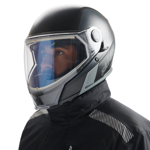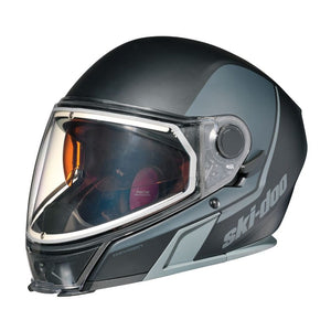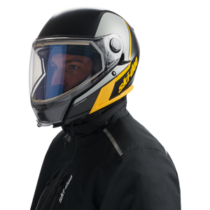 Power through peaks and valleys with the lightest Ski-Doo Oxygen Helmet ever created. This industry-leading helmet designed with the iconic Ski-Doo colors and style has a better field of vision than any other modular helmet on the market. Built with advanced M-Forge composite technology for superior protection, this new heated snowmobile helmet is lighter than its predecessor, so you can ride for longer stretches without getting rider fatigue. The ultra-wide visor with heated chamber and retractable amber sun visor also help protect your sightline while providing you with enhanced clarity and zero spatial distortion, allowing you to you explore new playgrounds in full safety and comfort. DOT certified.