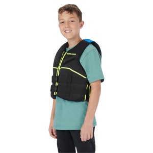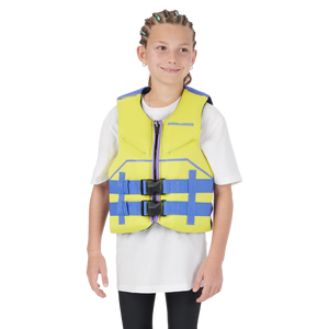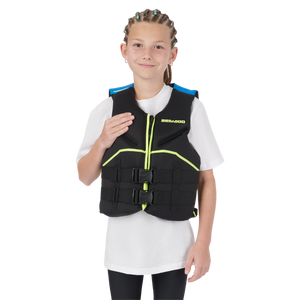 Splish splash! From plunges in the lake to cruising on the boat, your older kid is protected and free to move in the comfortable Sea-Doo Junior Freedom PFD. A junior PFD made with a durable, eco-conscious rubber-free ecoprene material that dries quickly and is highly breathable, this Sea-Doo Life Jacket is a must for water activities. Designed for kids weighing between 55 and 88 lbs, this Coast Guard-Approved PVC and polyethylene foam jacket features large armholes, expandable insulation and a fitted design for added comfort.