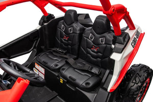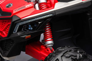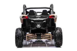 Get the whole family ready for a wildly fun ride with the 24Vx2 4x4 Can Am Maverick 2 Seater Ride on UTV for Kids! Make family rides more fun than ever with the 24Vx2 4x4 Can Am Maverick! Get ready for a safe and exciting ride with your little one. Enjoy the bump-free ride with the EVA tires, stay safe on the road with the LED lights, and control your little one’s speed with the parental remote control. Plug in your favorite tunes with the Mp3 + USB + Aux-in feature and make memories in the comfortable leather seat. Get your little one ready for their adventure with the 24Vx2 4x4 Can Am Maverick!