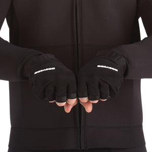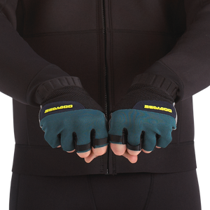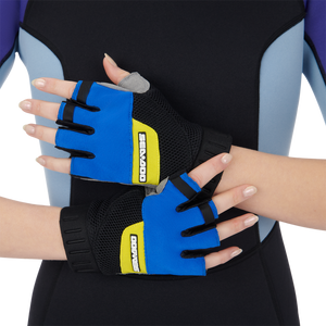 Keep your hands covered and comfy as you participate in your favorite water activities with the Sea-Doo Choppy Gloves. Ultra-stretchy nylon fabric lets you move easily, while the pre-shaped finger and stretch neoprene cuffs allow for a just-right fit. Cushioned Clarino† Nash material with 2mm padding allows for a plush feel and rubberized Pro-Grip at the palm keeps hands from slipping. A wrist puller with silicone print completes these essential water-lovin' gloves.