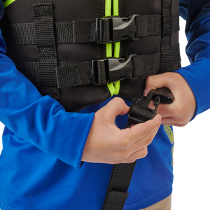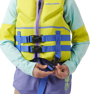 Your kiddo can move and groove freely on the water in the eco-friendly Sea-Doo Kids' Freedom PFD Life Jacket. Ecoprene material is environmentally conscious and is free from rubber while delivering an ultra-light, flexible feel. Foam inserts made with PVC and expandable Polyethylene.