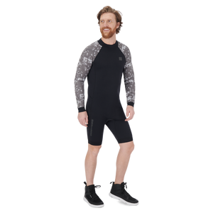 Dive into the deep blue sporting our Men's 2/2mm Shorty Wetsuit Long Sleeve. Designed for ultimate comfort, protection and performance, this Sea-Doo long-sleeve wetsuit with built-in UV protection is perfect for splashing around in the water. The adjustable back collar closure ensures a comfortable fit, while the YKK auto-lock long-pull back zipper guarantees easy on and off. With perforated foam to enhance your range of motion and Glideskin seals on the arms and legs to prevent chafing, the Men's 2/2mm Shorty Wetsuit Long Sleeve will keep you covered and looking great from every angle.