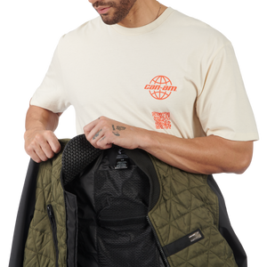 Combine on-road style and protection in the Men’s Can-Am Cuna Bomber Jacket. Safety-certified in the EU and United Kingdom, this piece of outerwear is constructed from a weather-resistant fabric blend and packed with 40gsm compact polyfill insulation to keep your body warmth in. The sleeves and hand pockets feature CORDURA nylon to ensure you and your essentials stay dry. Removable SAS-TEC Flex armor in the elbows and shoulders offers superior protection in case you need it, and the Cuna jacket is compatible with back armor as well (sold separately). You’ll enjoy the secure fit that the ribbed waistband and cuffs deliver, while reflective details and sunglass loops at the chest branding offer utility and some motorsport style as well.