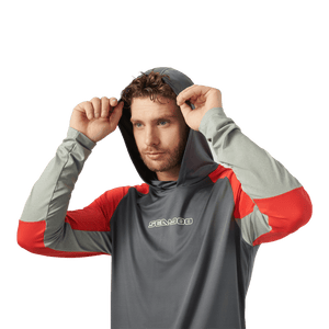 Ride the waves without worrying about sun-damage or chafing in this premium Sea-Doo Men's UV Protection Hooded Shirt. Its 50 UPF UV protection keeps your skin safe and teams up with quick drying and cooling polyester and spandex blend material. The hood and built-in gaiter mask add in an extra layer of defense, while the loose foot helps you move freely. Sea-Doo logo branding at the center front chest completes this performance top.