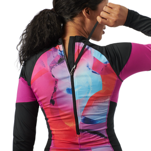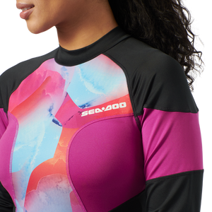 Catch all the waves you want when you sport this Sea-Doo Women's One-Piece-Suit Rashguard on your ride. Polyester and spandex blend material gets a boost of UPF 50 UV protection, while the quick-drying design keeps moisture from getting you down. The back zipper closure features long tape so you can easily pull the suit on. Plus, Sea-Doo logo branding at the center front chest ups the style factor on this watersports essential item.