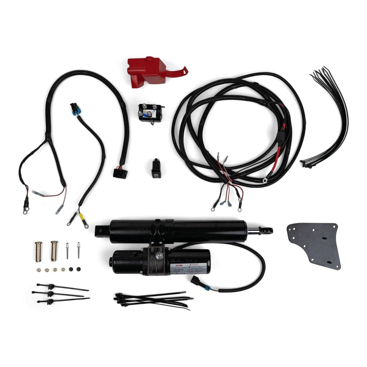 Powerful cargo box tilter with dash-integrated switch. Electrical actuated hydraulics for a strong and quick tilting system. Defender 6x6 2020 & up