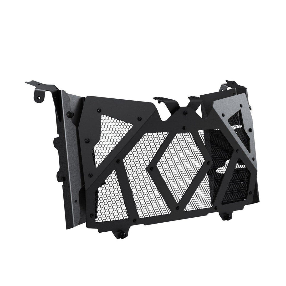 Radiator grill that replaces stock plastic louver. Tool-less quick removal renders washing radiator a simple task. Made from 5052-grade aluminum. Metal shield mounted over radiator face provides protection from stones and branches. Maverick, Maverick MAX 2015 & up models (except X mr models)